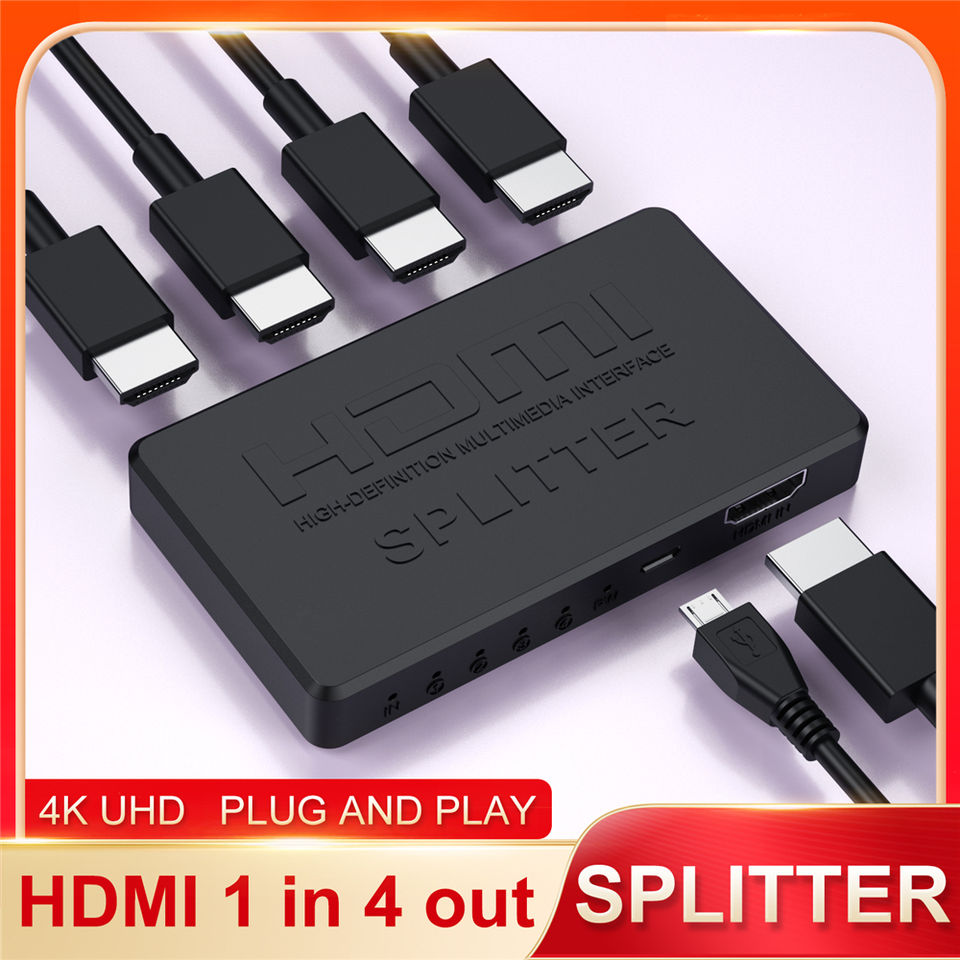 Répartiteur HDMI 4K 1 entrée 4 sorties, mini répartiteur HDMI ultra-fin 1x4, concentrateur d'affichage 4 ports, amplificateur répéteur pour PS5 PS4 Xbox Apple TV PC
