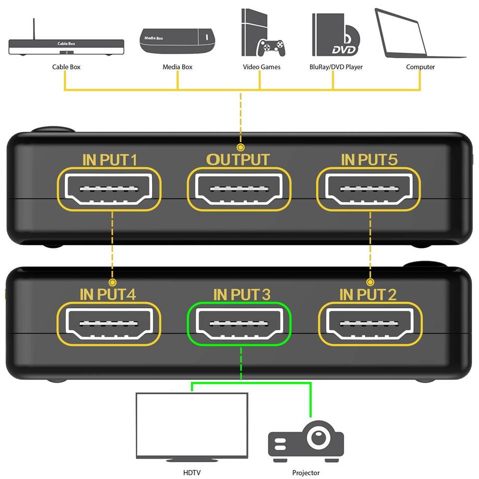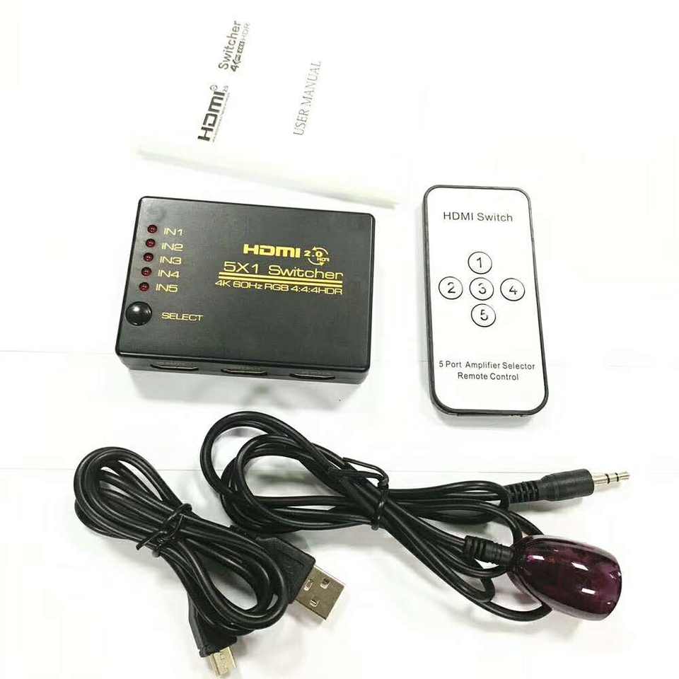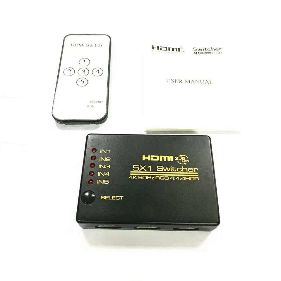 Commutateur HDMI 4K 5 ports 5 en 1 sortie prend en charge 4k 60HZ YUV avec télécommande IR pour PS4 Xbox Apple TV Fire Stick