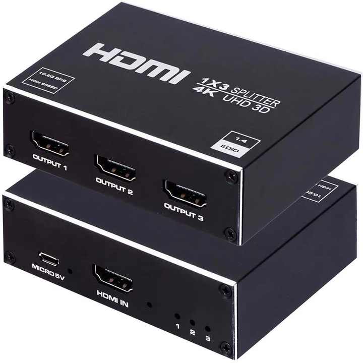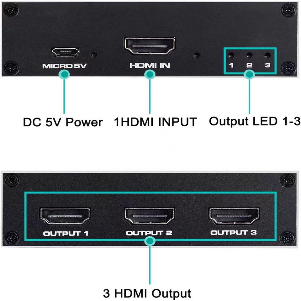 Répartiteur hdmi 1X3 4K de haute qualité 4K @ 60HZ Répartiteur hdmi 1.4 3 ports 1 entrée 3 sorties Prise en charge HDR 10 3D, Répartiteur HDMI LED