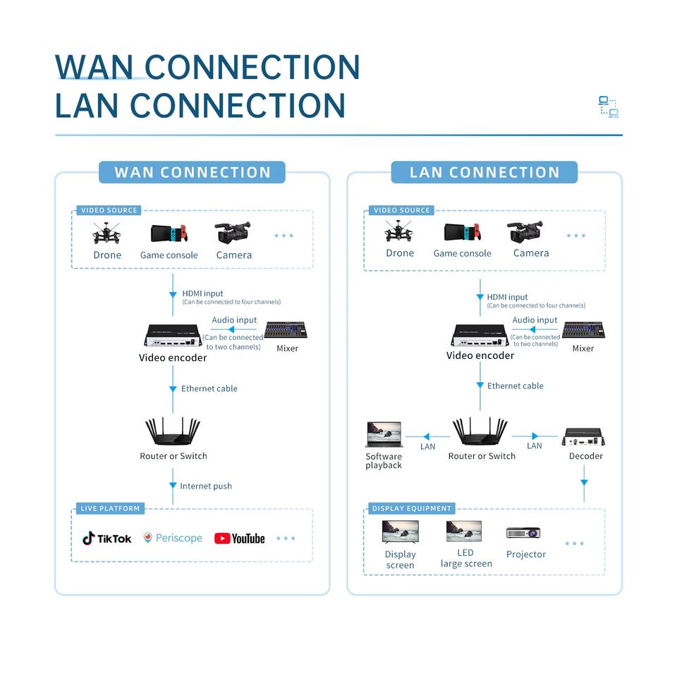 Boîtier de capture vidéo HDMI 4 canaux 4K SRT UDP H.265 H.264, encodeur, transmetteur, diffusion en direct, DVBT IPTV