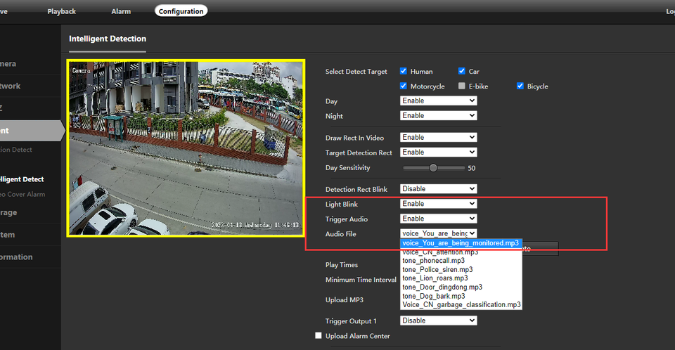Clé Feature2:Imagerie couleur lors du déclenchement de l'alarme par détection humaine ou véhicule
