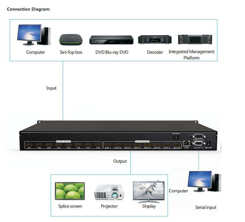 Commutateur matriciel HDMI vidéo 4K 8x8, MT-ViKI ADI HDMI Matrix 8 entrées 8 sorties, disponible pour 4x4 8x8 8x16 16x16 32x32 36x36 72x72