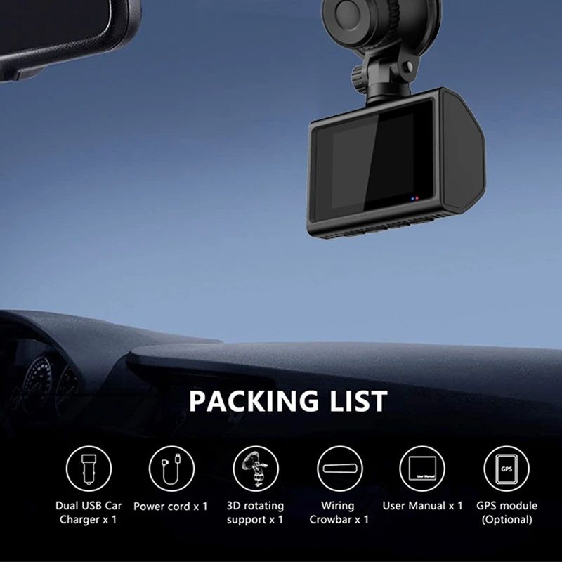 Bluetooth, Imperméable, Vision nocturne, Couleur pleine, G-sensor, MODE park, Enregistrement en boucle, Intégré WiFi, Détection de mouvement, Contrôle de l'application, GPS INTÉGRÉ, Intégré GSM, D'urgence Accident Serrure, Batterie Intégrée, SDK