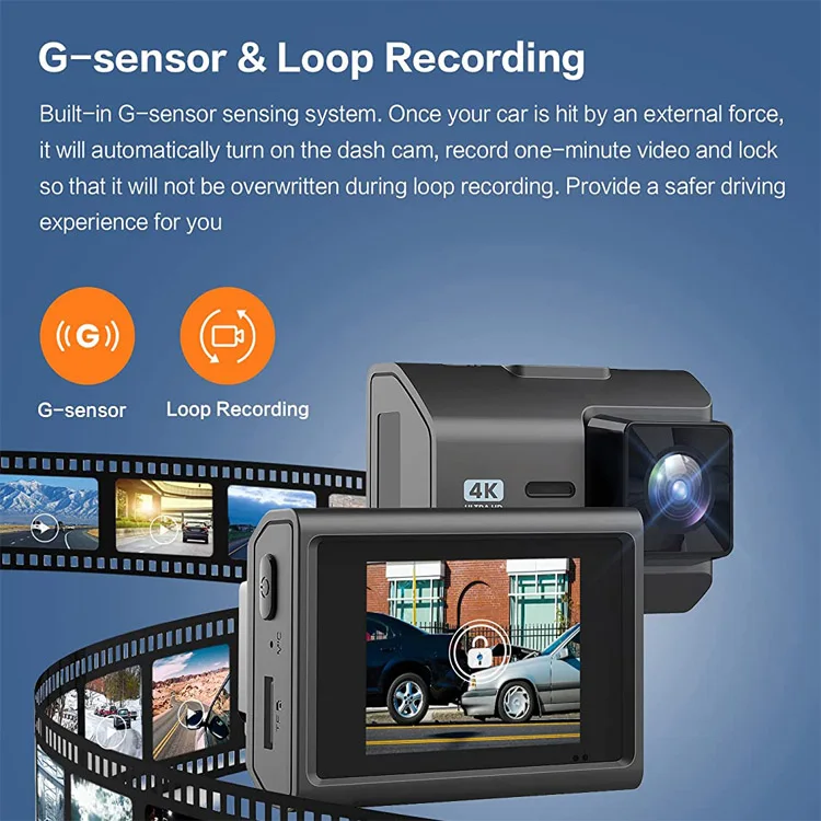 Caméra de tableau de bord GPS WIFI 4K Enregistreur de caméra de voiture à double objectif Écran IPS de 2 pouces Mini Dvr Cam avec vision nocturne Surveillance de stationnement Caméra de voiture