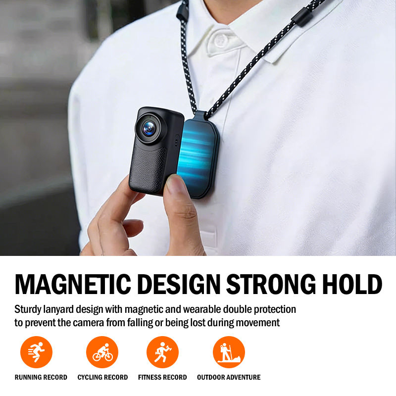 Caméra d'action 4K WiFi avec stabilisation d'image, caméra corporelle WiFi avec objectif grand angle et support de poitrine pour vlogging et casque de moto