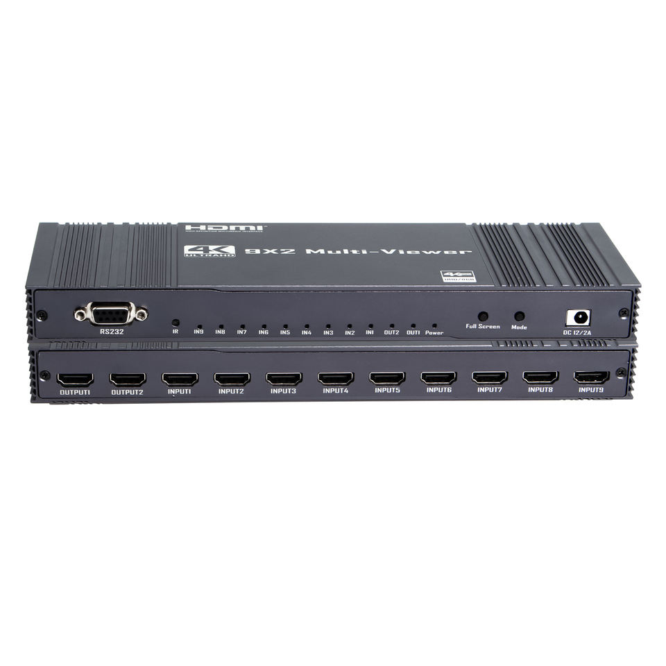 4K pour HDMI Seamless Switcher avec télécommande RS232 Multiviewer 9x2 Screen Real Time Multi Viewer 9 in 2 Out Video Splitters Convert