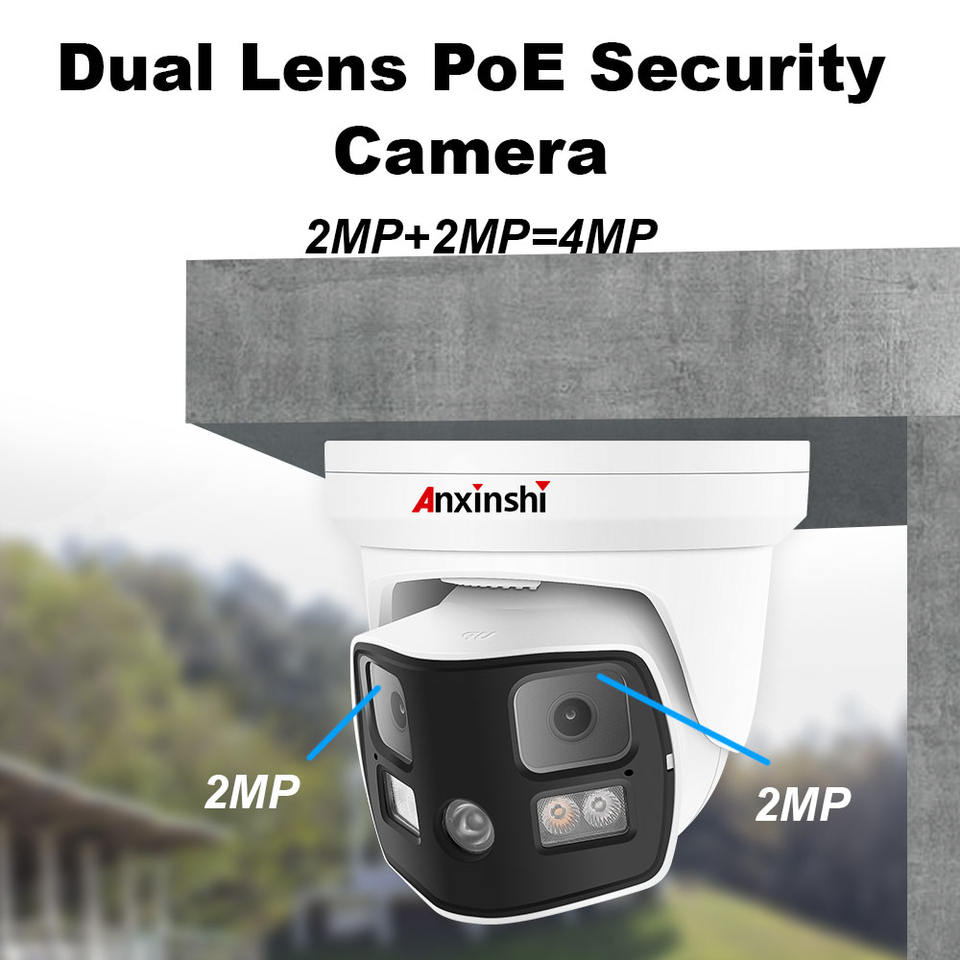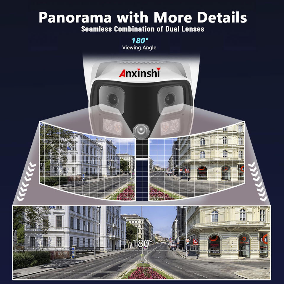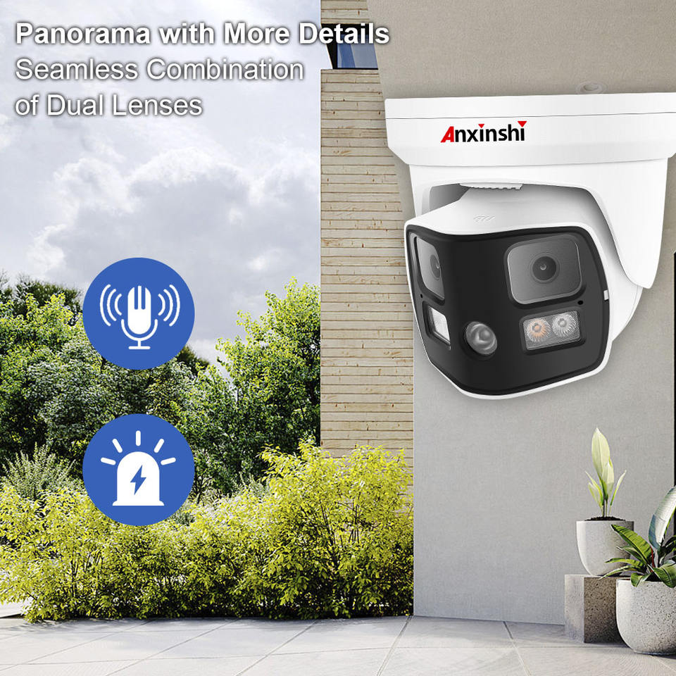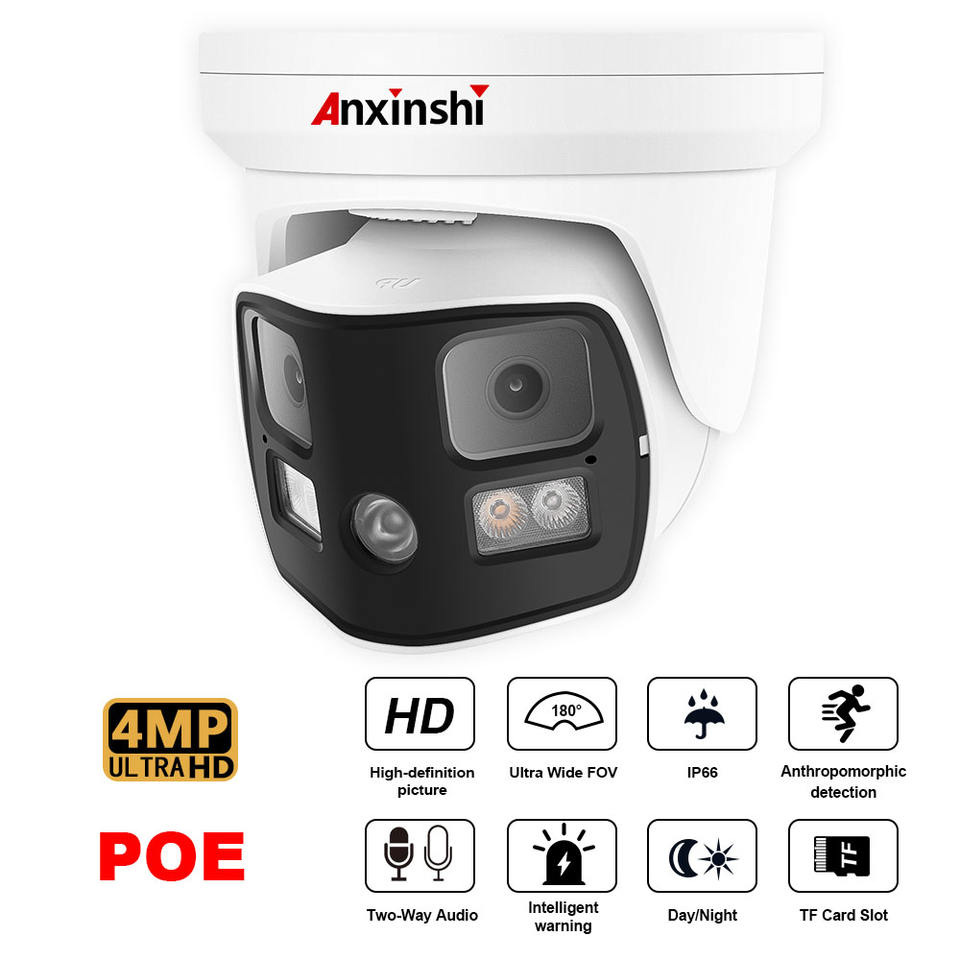 Caméra de sécurité IPPOE extérieure Audio bidirectionnelle à double objectif 4MP à 180 degrés avec détection humaine en couleur