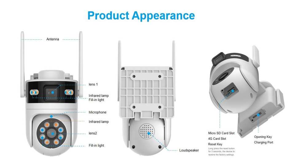 Imperméabilisez/protégez contre les intempéries, Vision nocturne, RESET, Micro intégré, POE interne, Double lumièreFonction