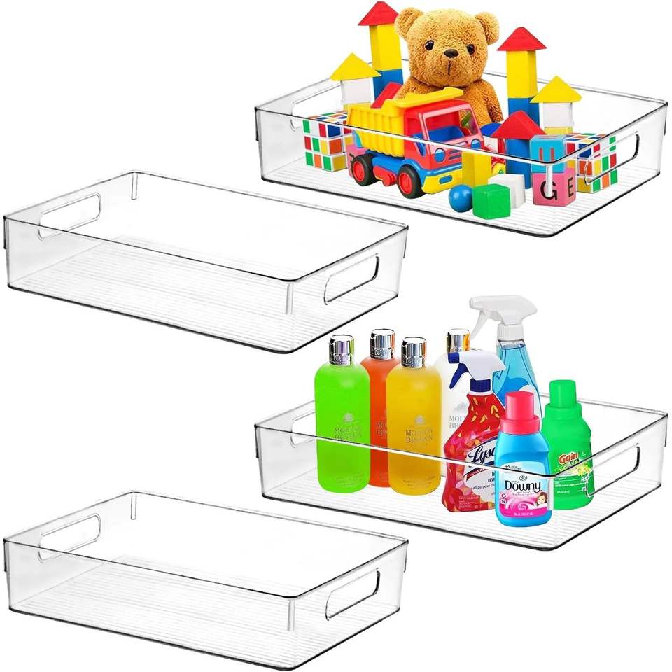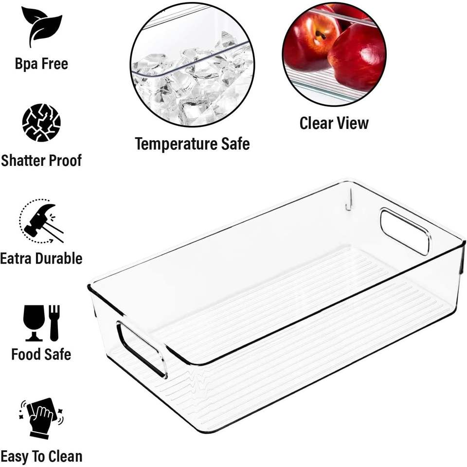 Lot de 4 grands bacs de rangement transparents en plastique pour réfrigérateur et garde-manger, idéaux pour organiser votre espace