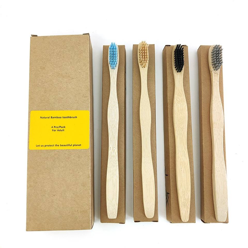 Brosse à dents en bambou naturel pur, 4 pièces, brosse à dents Portable, brosses écologiques, outils de soins bucco-dentaires