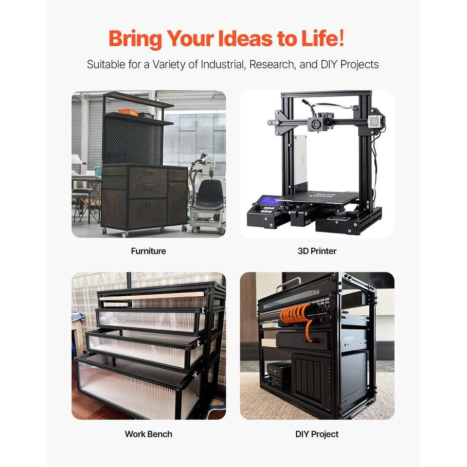 4 profilés d'extrusion en aluminium 4040 haute résistance de 23,6 (600 mm), rail linéaire anodisé standard européen, 4 profilés en aluminium
