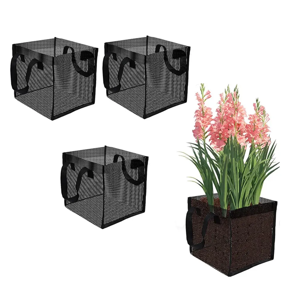 Lot de 4 paniers en filet pour plantes aquatiques, grands sacs de plantation pour bassin avec poignées, paniers de rangement