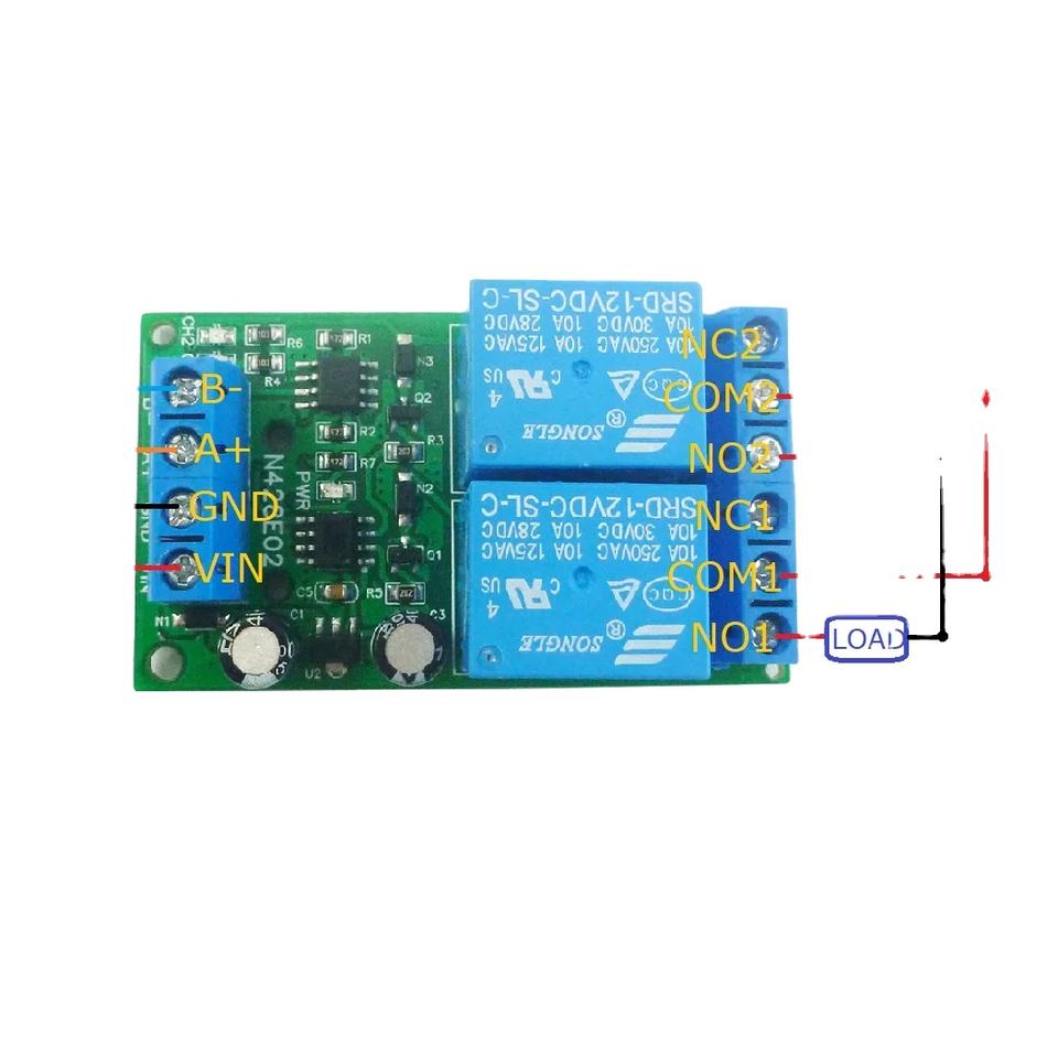 Module de relais Modbus RTU à 2 canaux, 4 pièces, N428E02 DC 12V, montage standard, code de fonction 03 06 16 B529