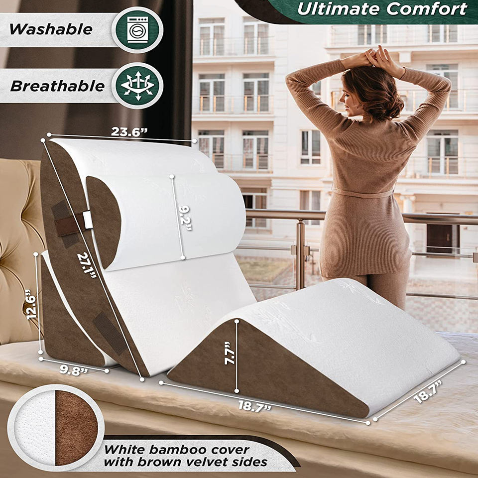 Ensemble de 4 oreillers orthopédiques pour le sommeil, coussin de soutien réglable en triangle pour le reflux acide et le ronflement.