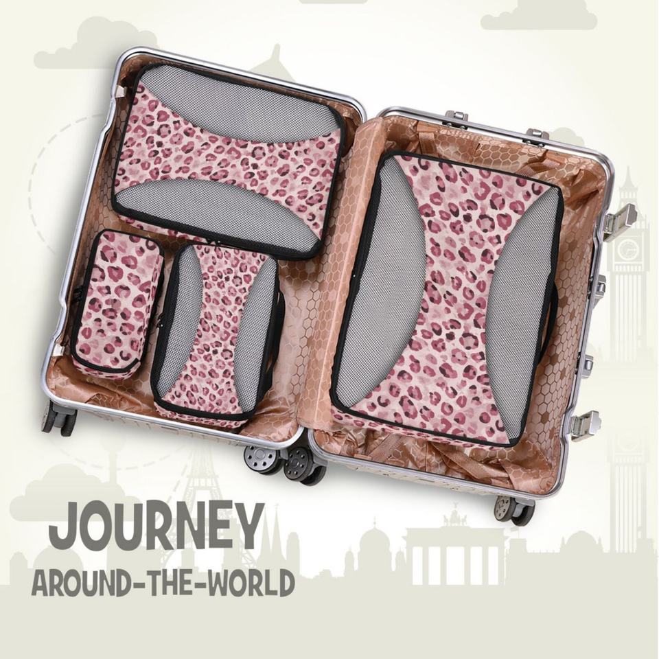 Ensemble de 4 cubes de rangement pour valises, motif léopard rose, légers, double fermeture éclair, impression personnalisée, cubes de compression pour les voyages