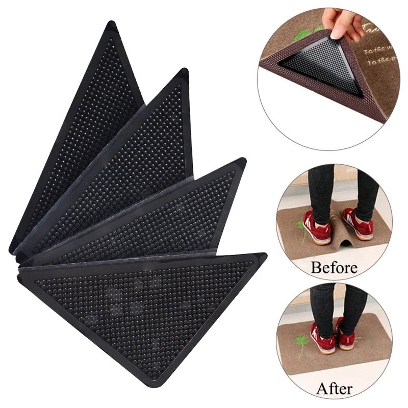 4 pièces de coussinets antidérapants pour coins, réutilisables, antidérapants pour tapis, patchs antidérapants, triangle lavable, adhésif pour tapis, bande adhésive, autocollant