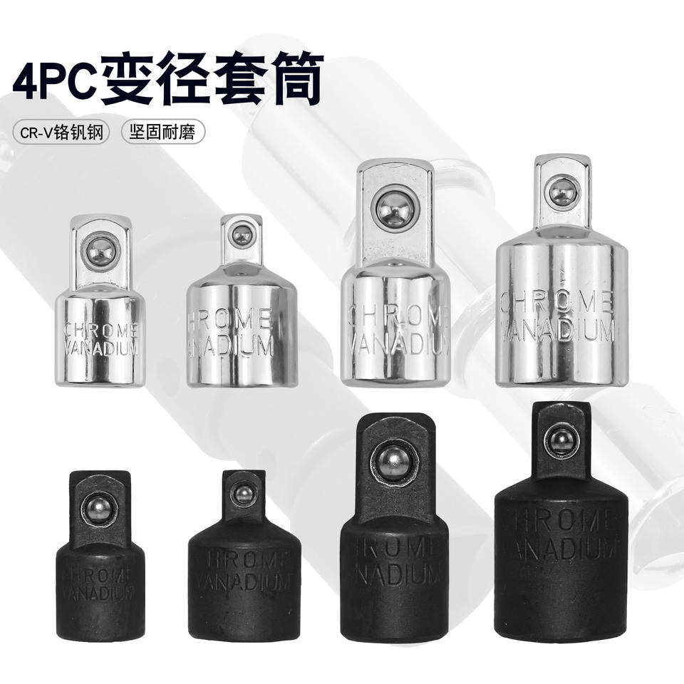 4Pc Reducing Socket Set 1/2 3/8 1/4 Cr-V Chrome Vanadium Steel Silver Black Automotive Repair