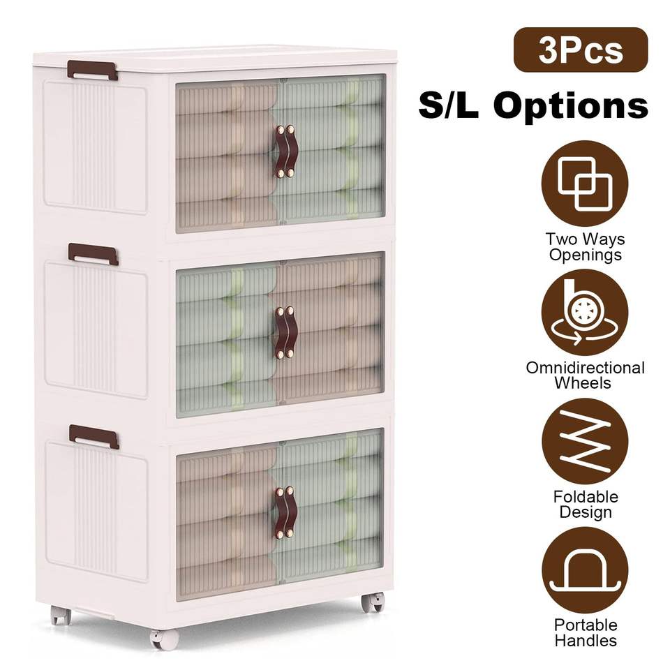 Lot de 4 bacs de rangement pliables à 360 degrés avec couvercle et porte magnétique avant, empilables, organisateur de placard pour enfants et adolescents