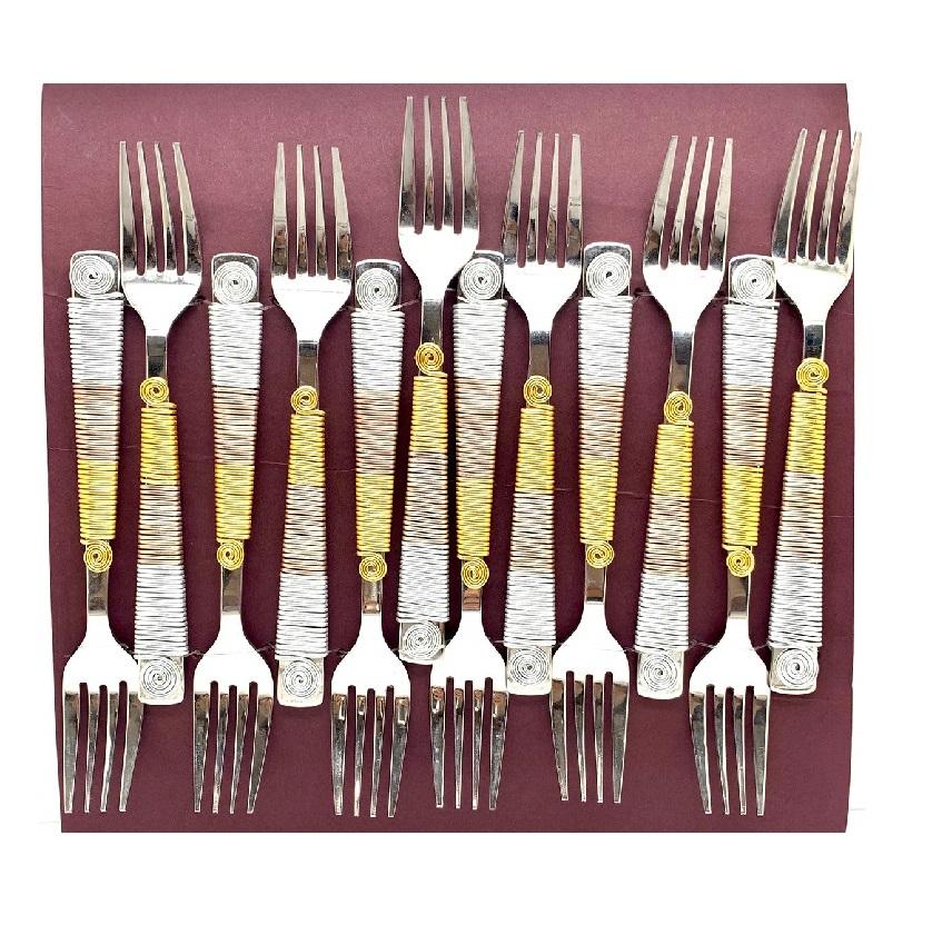 Lot de 4 couverts à manche martelé Set de cuillères et de fourchettes de luxe Set de couverts en acier inoxydable Set de couverts de mariage en or