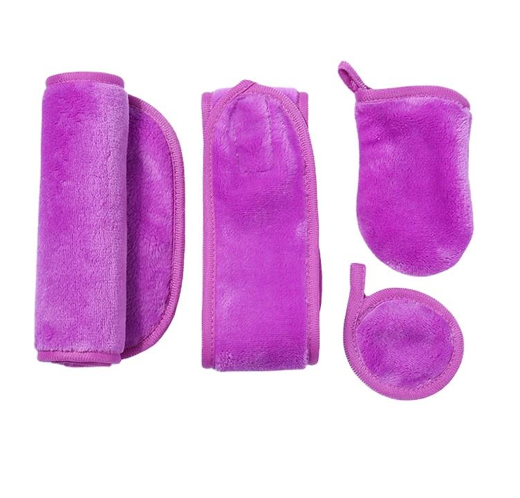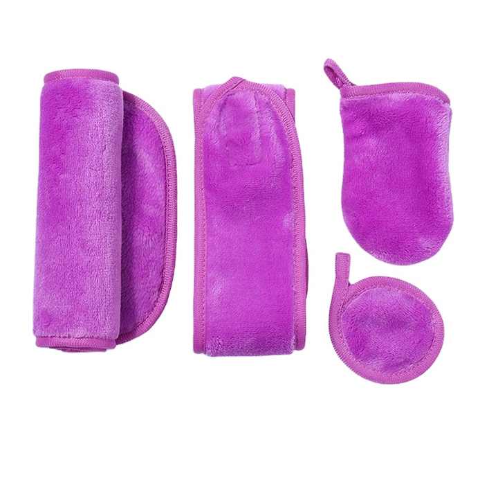 4 Pcs/Set Set de chiffons démaquillants réutilisables Serviette de nettoyage du visage Lingettes lavables en microfibre Gants nettoyants pour le visage