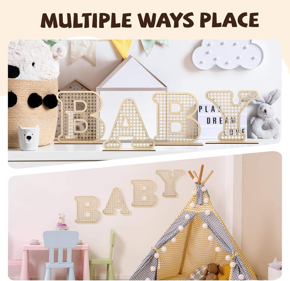 4 lettres en bois pour bébé, décoration rustique pour la maison, lettres de l'alphabet pour la fête prénatale, cadeaux pour nouveau-nés, anniversaires, fêtes pour tout-petits, filles et garçons