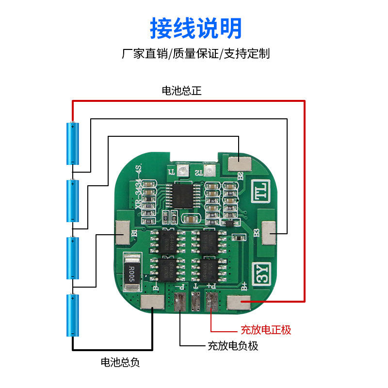 Carte de charge et de décharge 4S 12.8V 5A/10A pour batterie Lithium 3.7V ou LiFePO4 3.2V avec protection thermique, même port