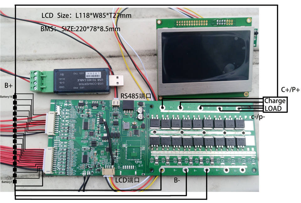 BMS LiFePO4 4S-16S 200A, protocole de communication I2C, connexion avec application de téléphone portable, écran LCD, ordinateur hôte