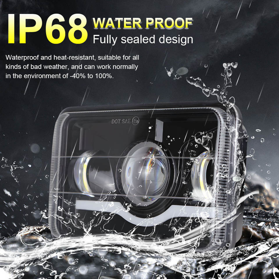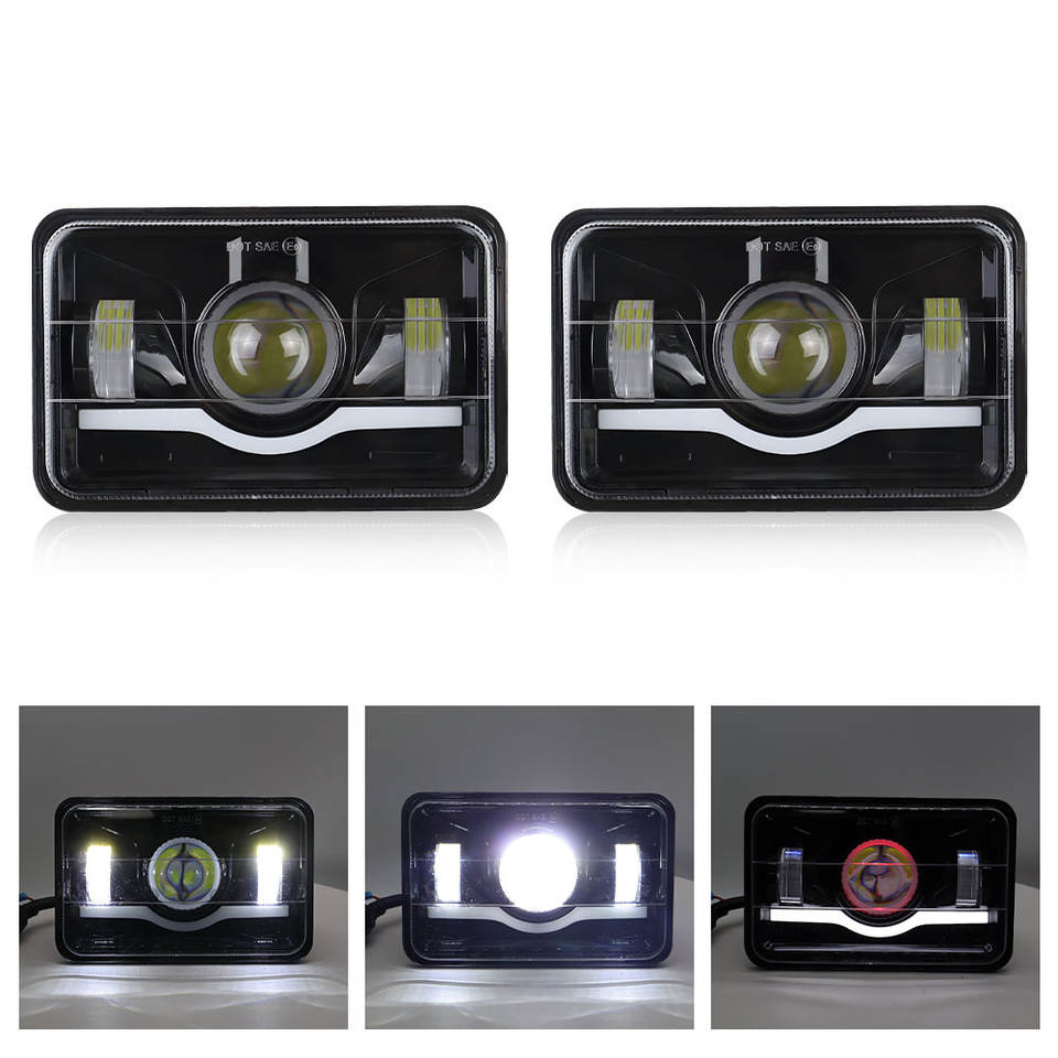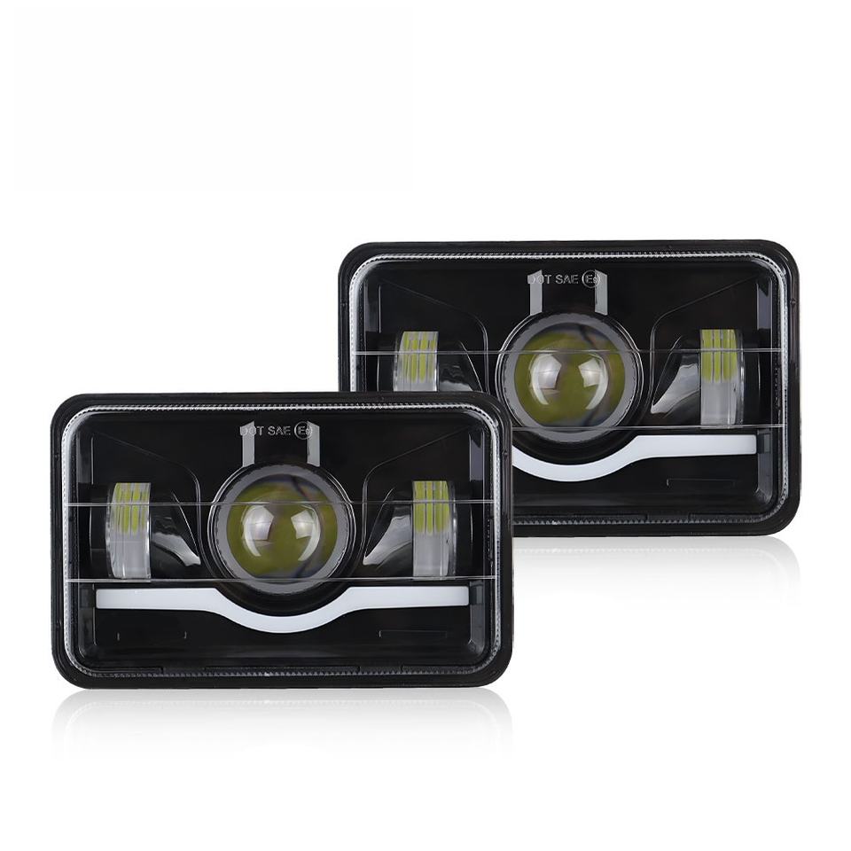 Forme carrée 4X6 pour phare Wrangler, faisceau haut/bas, clignotants DRL, lumière de jour étanche, H4 6000K 30000LM 45W
