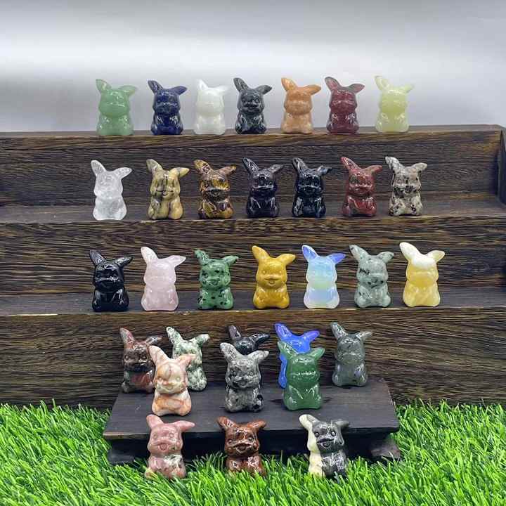 Cristal de fluorite sculpté de 4 cm, figurine Pokémon Mew, artisanat, pierres de guérison en cristal, cristal Pikachu
