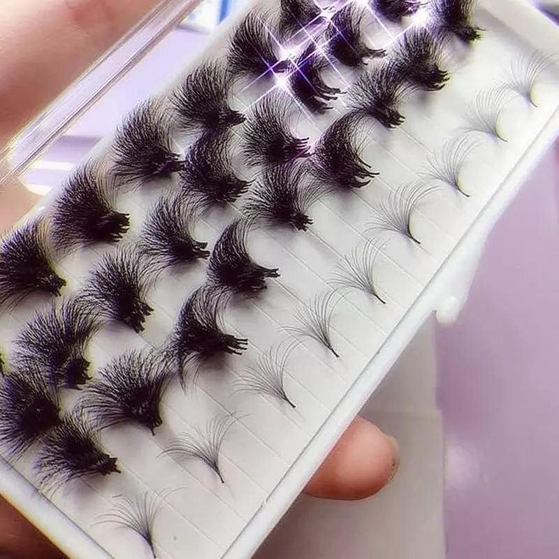 Fans préfabriqués à tige courte 4d-9d, Fans préfabriqués en soie en vrac, méga Volume 20d, Loose C D J L Curl, Base pointue, Fans préfabriqués