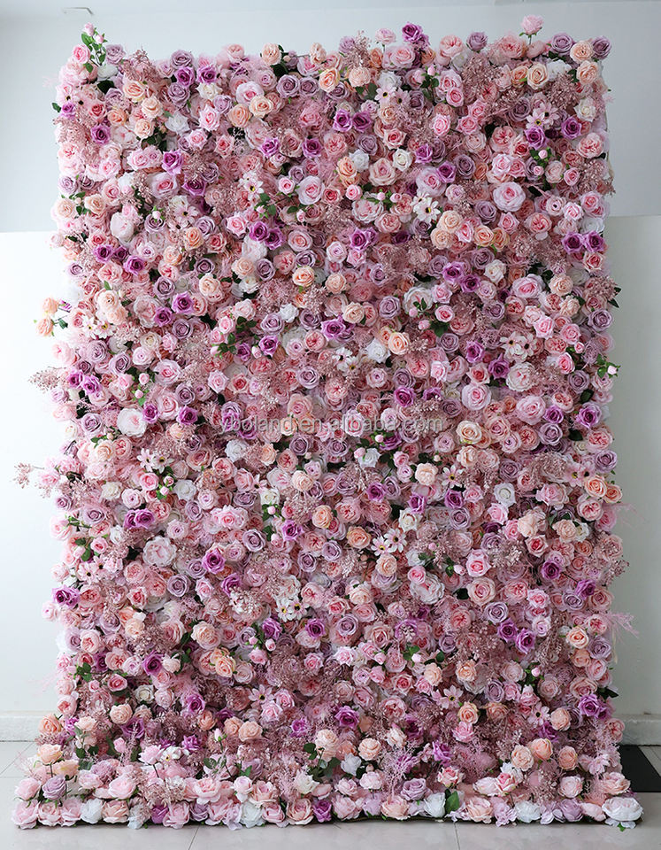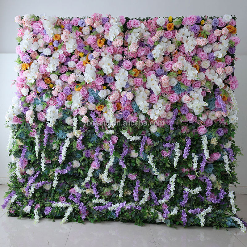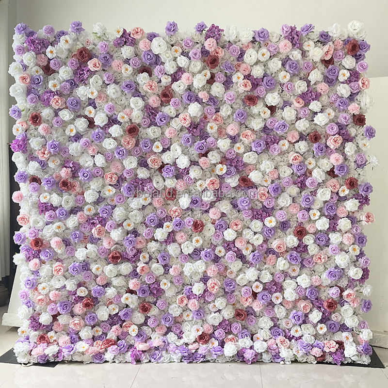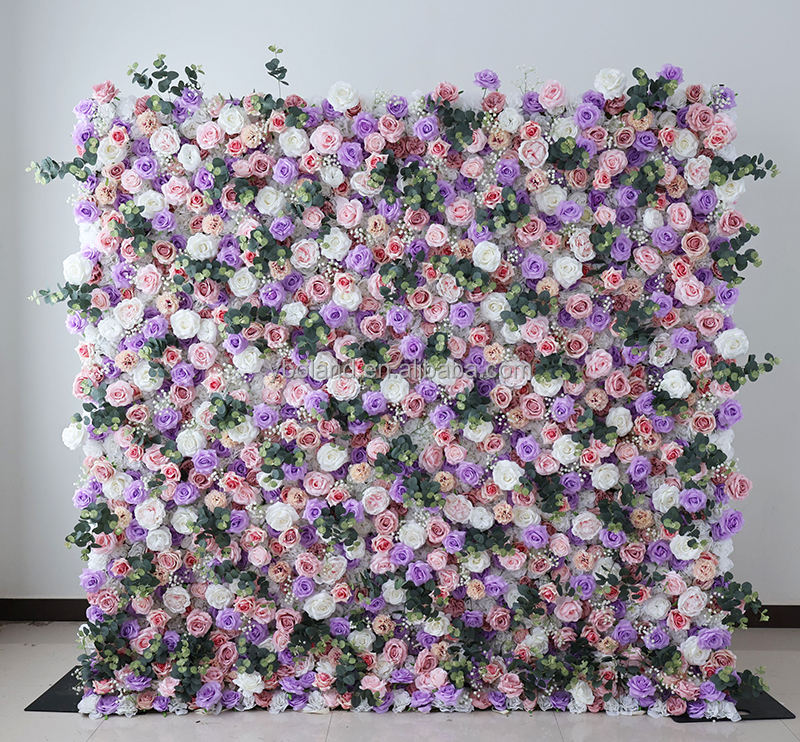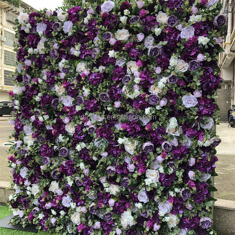 4ft 8ft 10ft Lilas Lavande Violet Faux Floral Mur Toile de Fond Panneau 3D Roll Up Soie Artificielle Rose Fleur Mur pour la Décoration de Mariage