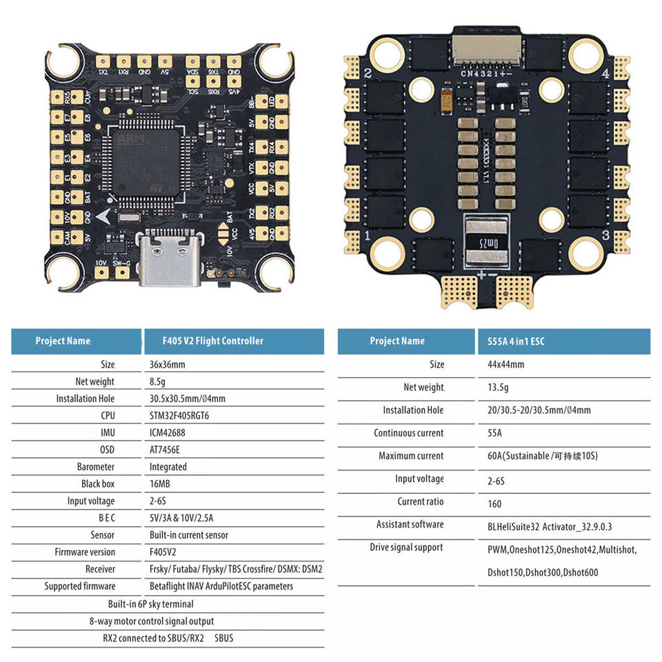 Contrôleur de pile esc de drone 4in1 F405 S55A/65A/90A fpv pour moteurs brushless dans FPV Drone Flying Tower drones accessoires