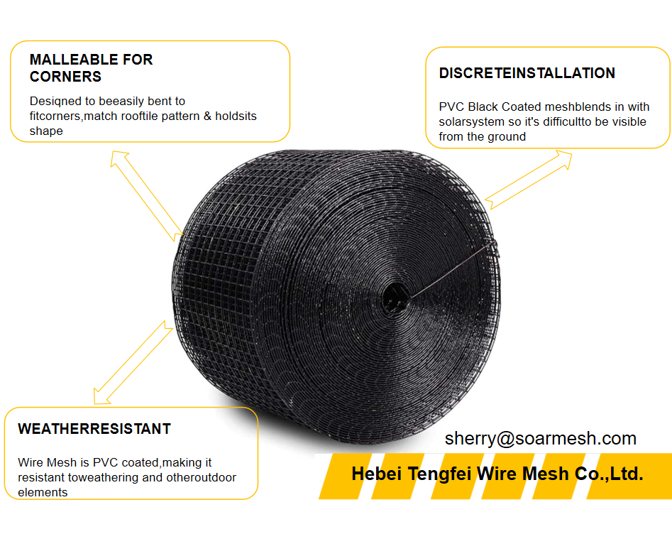 Garde d'oiseau de panneau solaire de 4inx100ft, garde galvanisé enduit noir de PVC pour des panneaux solaires, fil d'oiseau de panneau solaire de maille fine de 1/2"
