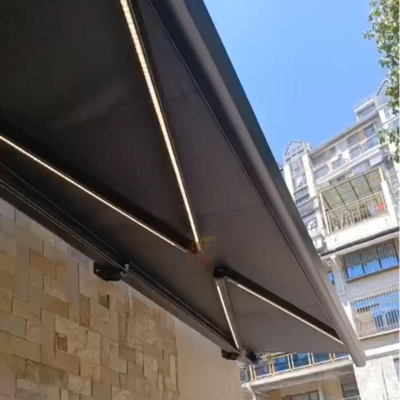 Application:Balcon, Hôtel, Commercial, Jardin, ARrière-cour, Protection solaire, Parasol, Auvent rétractable, Preuve de l'eau, Électrique, Canopée de pluie, Protection contre la pluie, Terrasse, Lumières DEL, Patio extérieur, Jardin extérieur, Protection UV, CAFÉ SHOP, Piscine, Résidentiel, VILLA