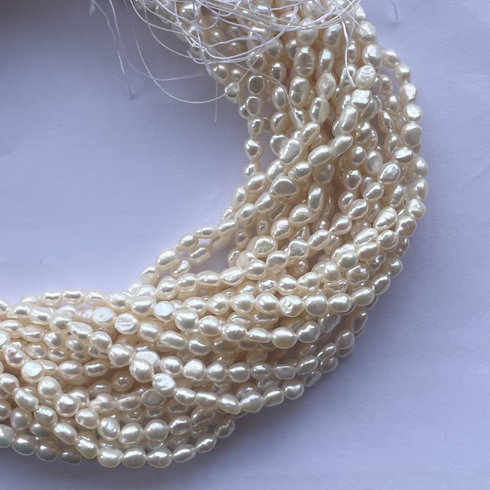 Perles d'eau douce de couleur crème naturelle, 4mm, 5mm, perles baroques, brin, fournisseur en gros, fabrication de bijoux en chaîne, vente de bricolage