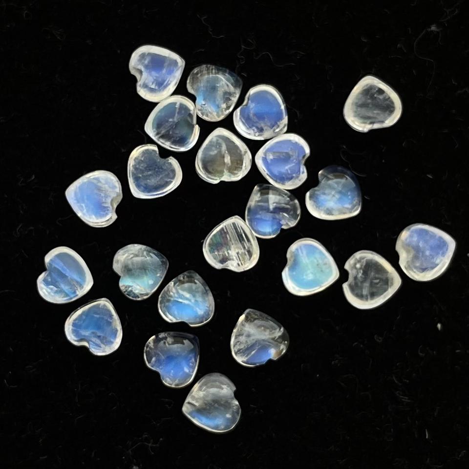 Product Name:Natural Blue Rainbow Moonstone Flat Back Heart Cabochon Gemstone