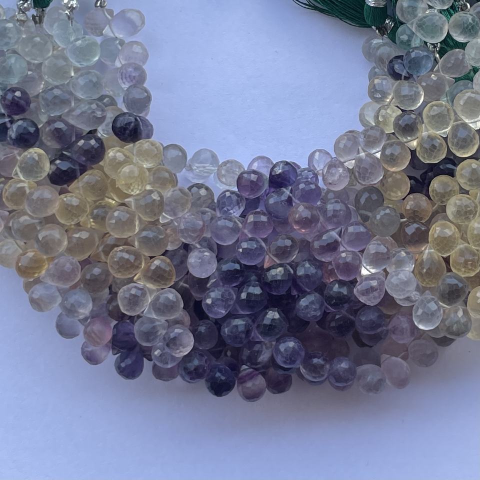 Product Name:Natural Multi Fluorite Stone Faceted Briolette Tear Drop Beads