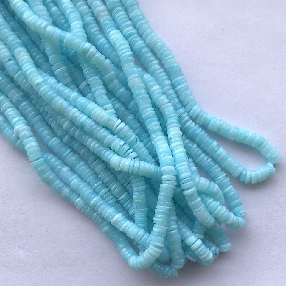Product Name:Natural Sea Blue Opal Stone Smooth Heishi Tyre Gemstone Beads Strand