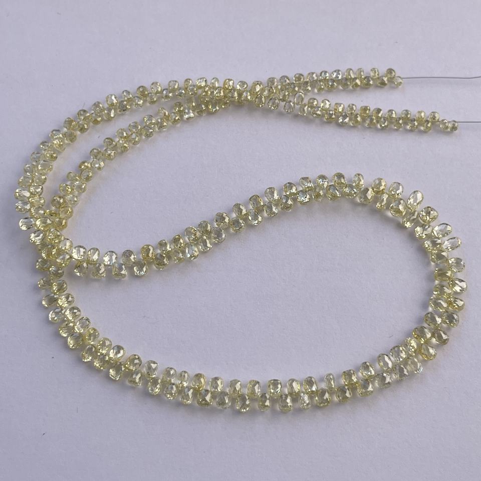 Nom du produit:Perles Briolette de gouttes facettées de diamant jaune-clair naturel