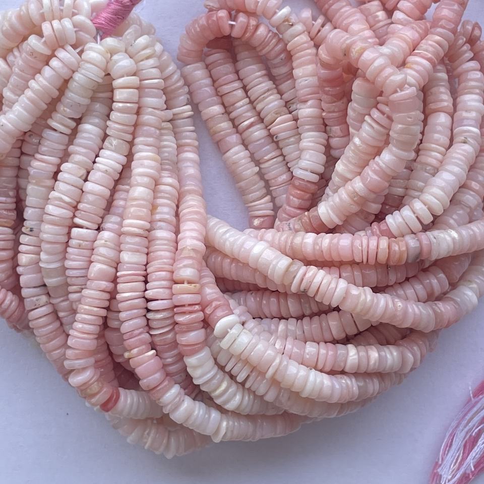 Product Name:4mm 6mm Natural Peruvian Pink Opal Smooth Heishi Tyre Gemstone Beads