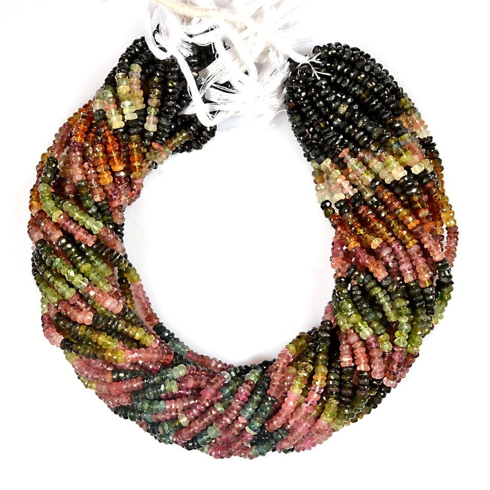 Rondelle à facettes multi tourmaline de 4mm Pierres précieuses en vrac Tourmaline naturelle de pastèque pour la fabrication de bijoux