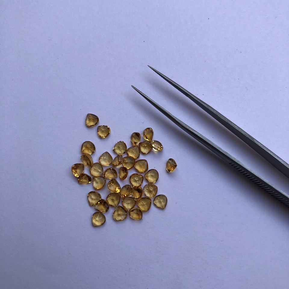 Pierre précieuse en citrine naturelle de 4 mm, taille cœur facetté, en vrac, prix de gros, achat direct auprès du fabricant, boutique de pierres précieuses authentiques