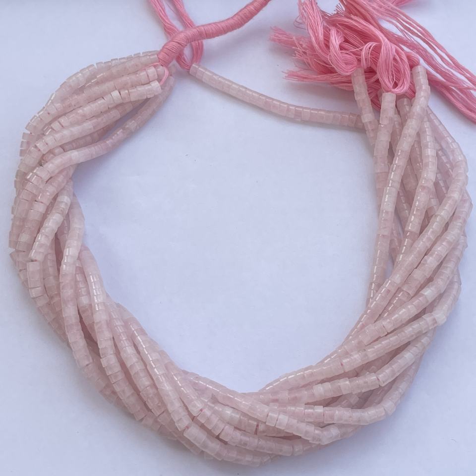 Product Name:Natural Pink Rose Quartz Stone Smooth Heishi Beads Strands