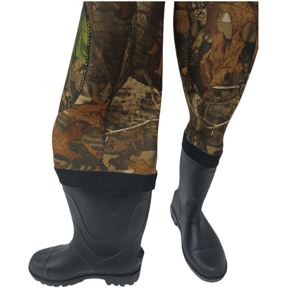 Cuissardes à bout en acier néoprène 4mm avec sangle réglable PVC Bottes Feuille Camo Design Imperméable pour la chasse Pêche Grande Poche