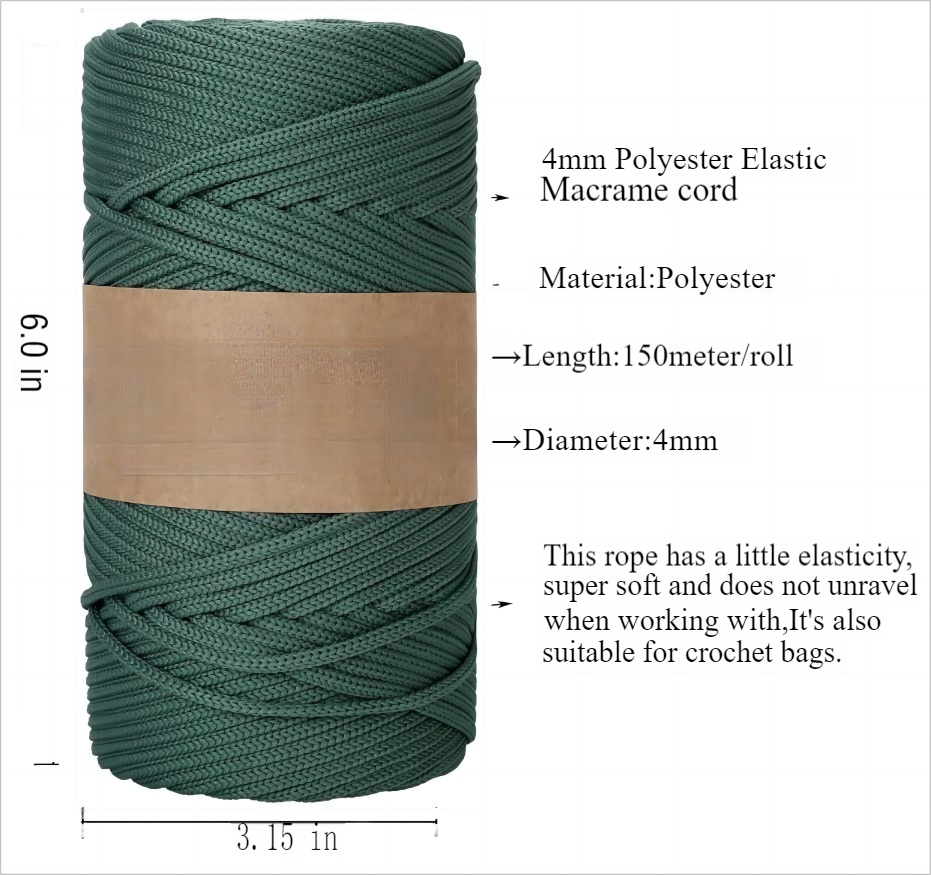4mm Polyester Tressé Macramé Cordon 150 mètre/492 Pieds, Fil Élastique pour Crochet Sac Cordon pour Bricolage, Plantes Cintres, Sac