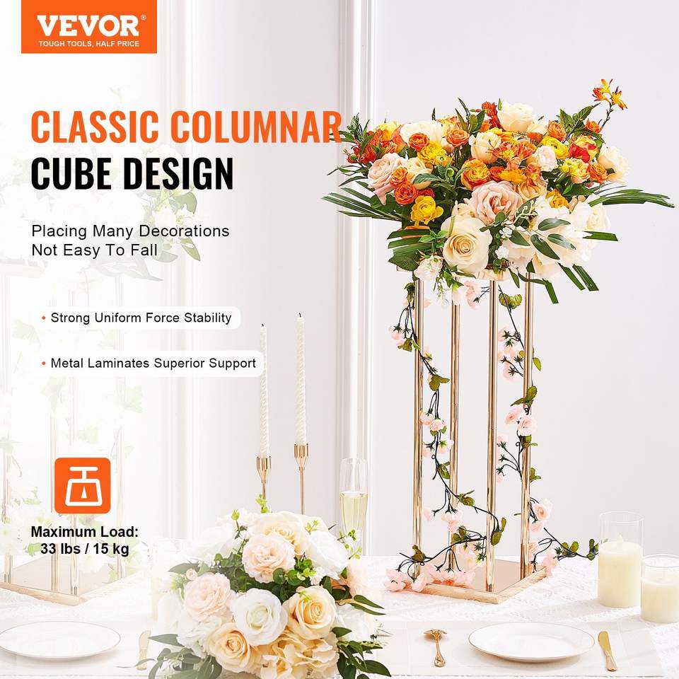 4 pièces, support à fleurs de mariage en métal doré de 31,5 pouces avec vase et centre de table cylindrique géométrique, décorations de table de mariage