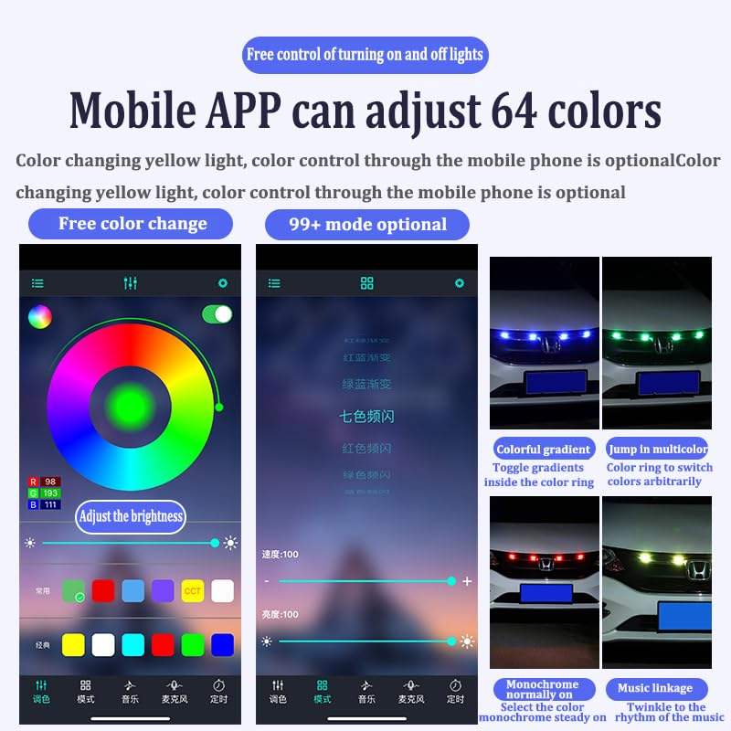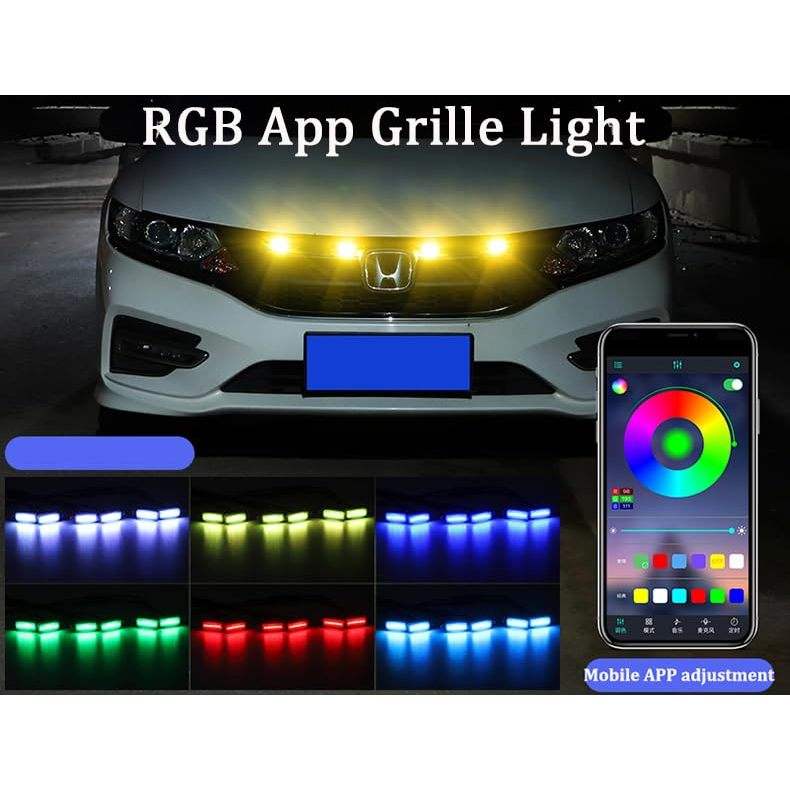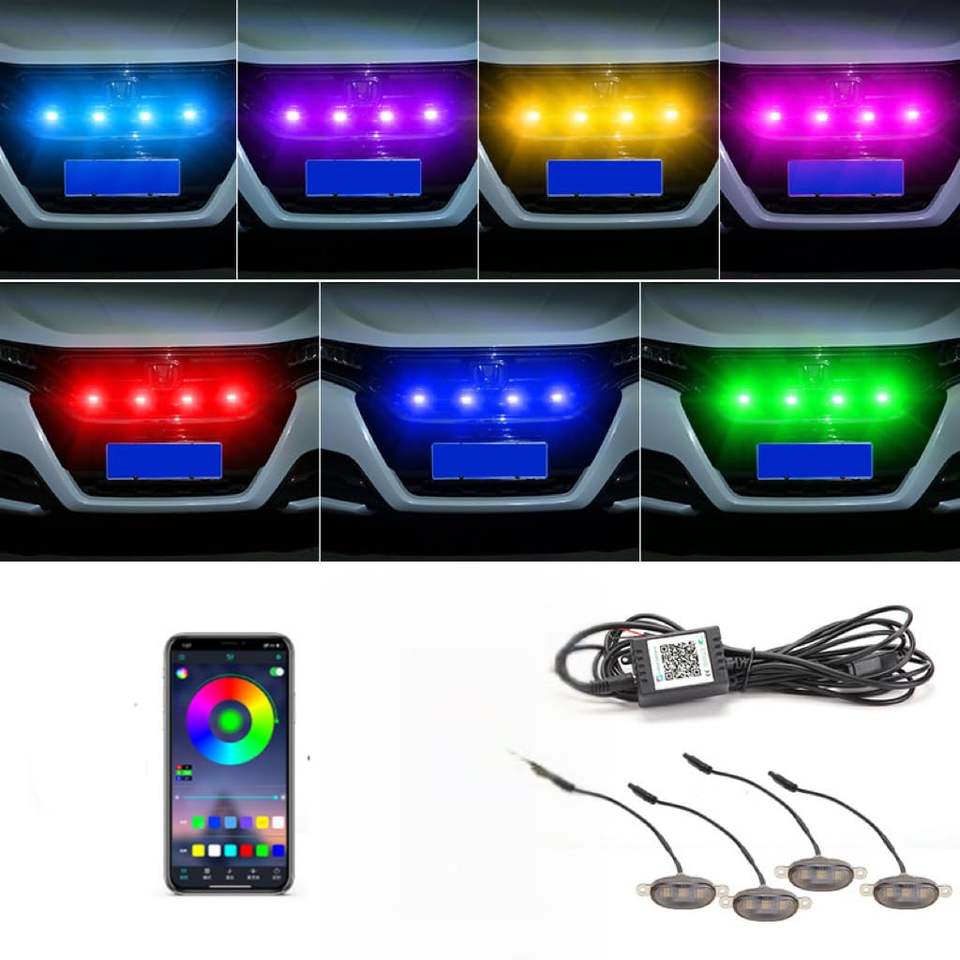 4pcs 64-Color LED Grille Lights Kit Front Bumper Grid Decorative Lighting for Car Grills Mounted Mesh