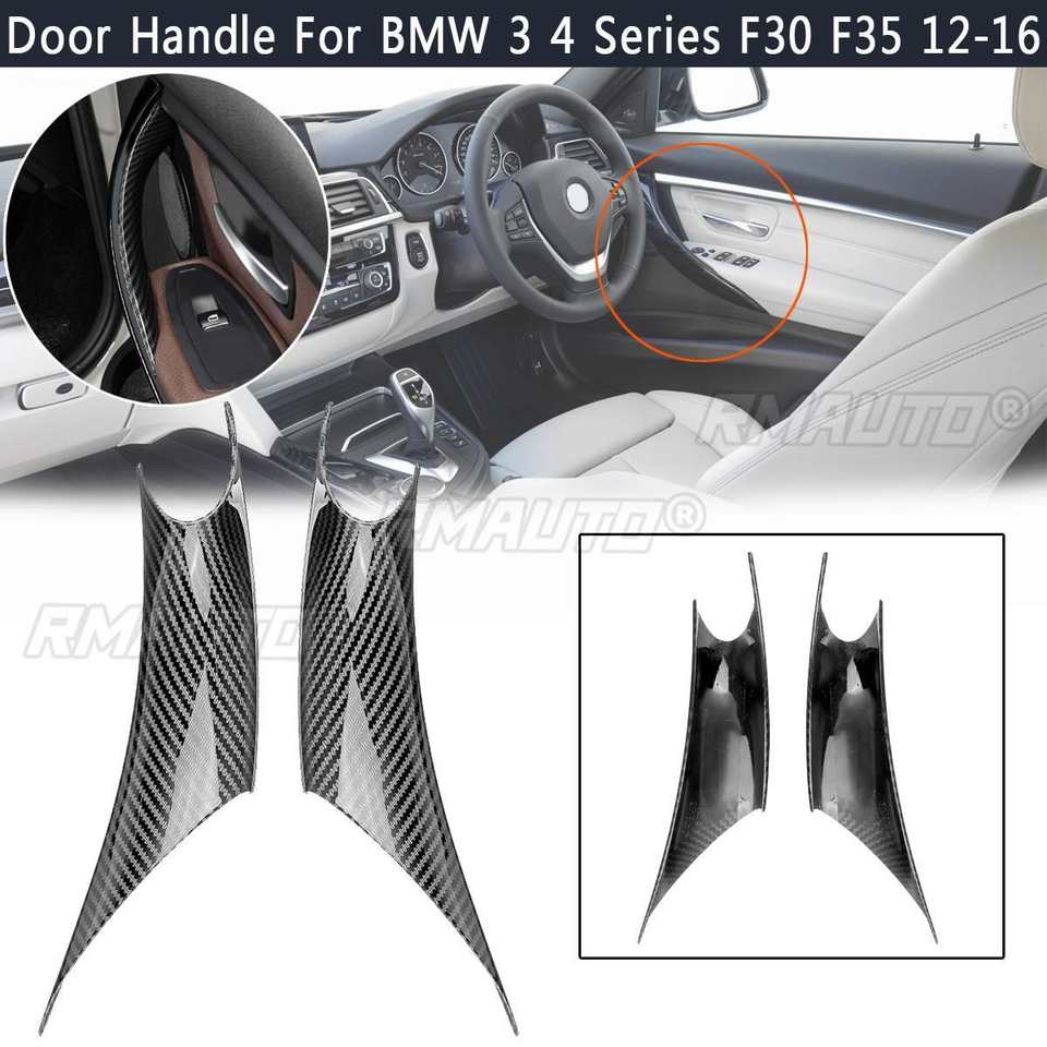 4 pièces de garnitures de protection pour poignées de porte et accoudoirs de voiture, texture fibre de carbone, pour BMW Série 3 et 4 F32 F34 F30 F35