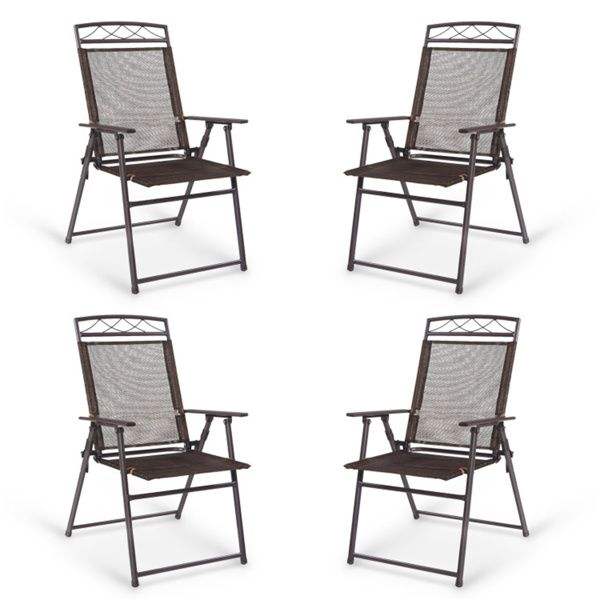 4pcs Café Couleur Patio Pliant Sling Chaises En Acier Camping Chaises De Plage