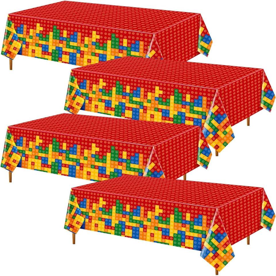 4 pièces de nappes colorées en forme de blocs de construction pour la vaisselle et les décorations de fête d'anniversaire